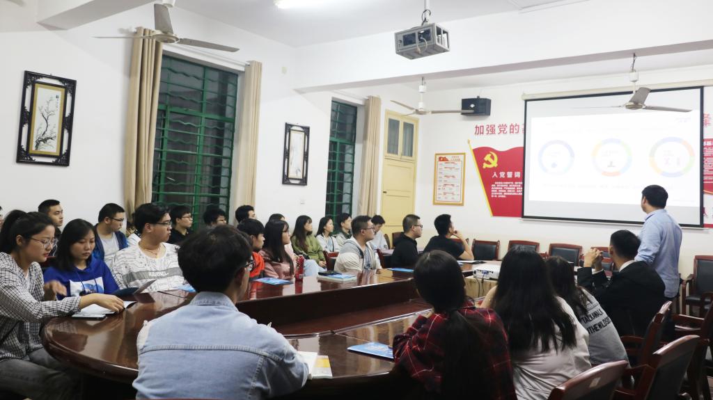 的多个专业,涉及化学工程与工艺、应用化学、生物工程等。招聘会上,黄承超介绍该公司成立于2005年7月,是一家按照国际标准为全球制药企业、新药研发机构等提供从临床早期研究直至药品上市全生命周期所需要的医药中间体及原料药定制研发生产服务的国家高新科技企业。公司产区按GMP标准设计,符合GMP的生产要求,主要是从事心血管药物、抗艾滋病类药物、糖尿病类药物、碘造影剂类药物、抗丙肝类药物等中间体研发、生产和销售。学生们了解了公司背景后,最关心的就是就业后的主要工作内容和薪资待遇。黄承超讲解到公司有为应届生量身打造的培养体系,一对一的导师专门辅导,线上和线下企业全覆盖的专业培训,定期汇报应届生的培养情况,公司高层会对毕业生进行持续关注。公司有极具竞争力的薪酬体系和全面完善的福利体系,固定工资加效绩工资再加工龄工资和年终奖,不定时还有额外的津贴补助,研发项目也有奖金。公司会为每个员工购买五险一金,有三节福利和员工生日福利,公司提供免费住宿,还有餐食补贴,每个员工可享受一次带薪的年假等等。为丰富员工的工作和生活,公司也会定期开展丰富多彩的文体活动。随后,07级学长李祥福与同学们分享了在该公司工作的经验,学生们同李祥福有着积极的互动。