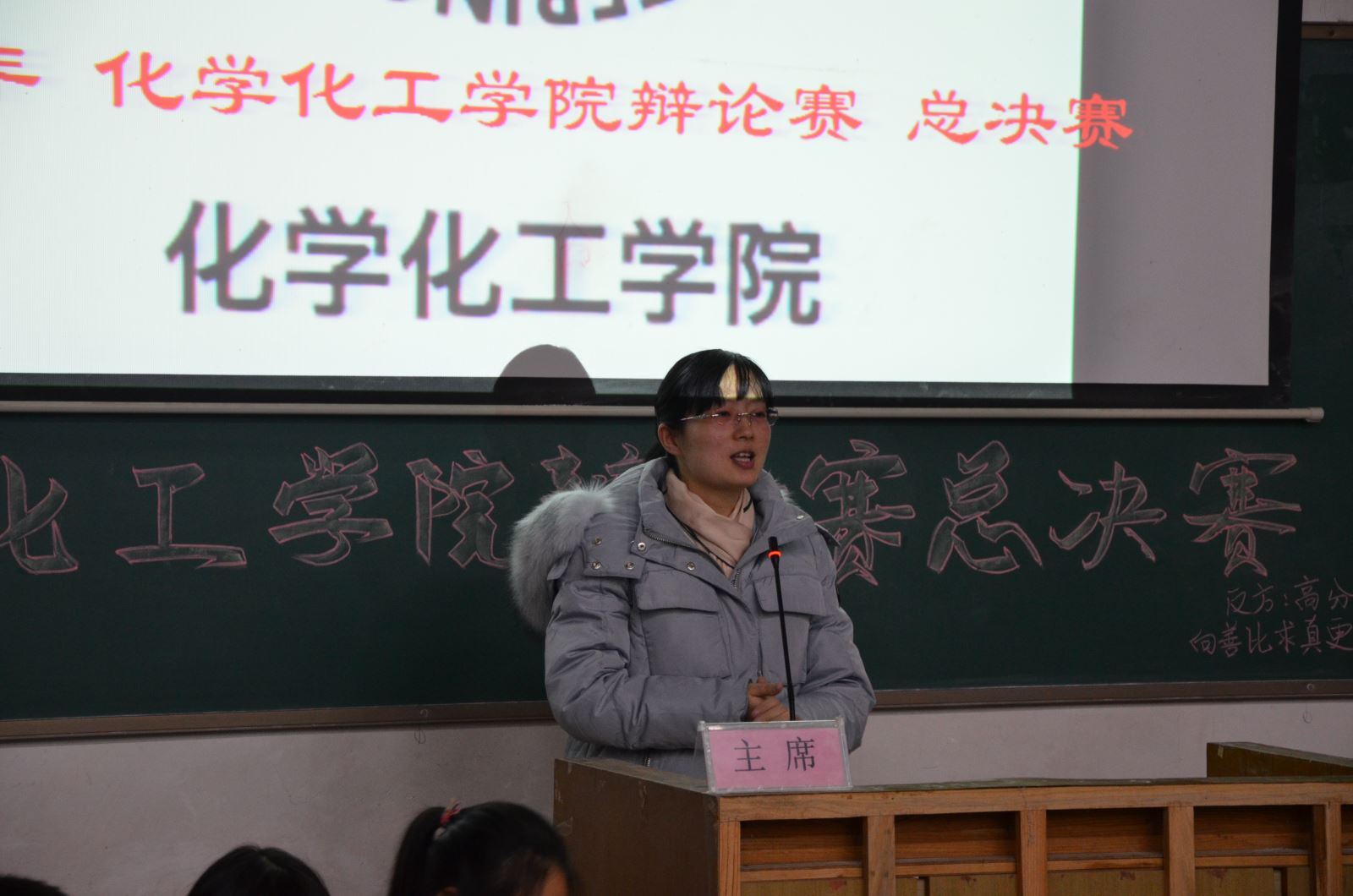 为丰富同学们课余文化生活,培养学生的逻辑推导能力。12月20日晚7点,化学化工学院在电教105召开辩论赛总决赛。学办主任吴菲、学办老师刘思博出席。部分学院主席团成员以及百余名辩论爱好者到场观看比赛。