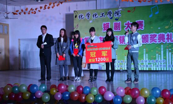 首先,文工团编排的一曲《worth it》开场舞引爆全场,拉开本次短剧大赛的序幕。紧接着各队伍按抽签顺序开始上台表演。许多团队的短剧编排在形式上大放异彩,其中《包治百病》、《学生会应聘》、《非诚勿扰》、《新闻晚知道》等短剧表演十分新颖、独特,题材引人注目。期间,穿插着化工学院首届市场营销大赛颁奖典礼,主持人依次宣读获奖名单,并为获奖队伍颁发证书和奖金。队名为“队伍向太阳”团队在比赛期间努力推销、不断尝试新的营销策略,最终以8888元的销售金额获得本次营销大赛冠军。