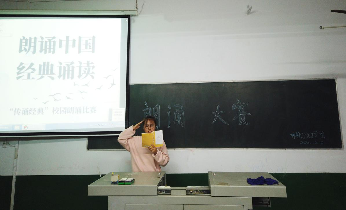 在四教102教室举行了“朗诵中国”经典诵读大赛。