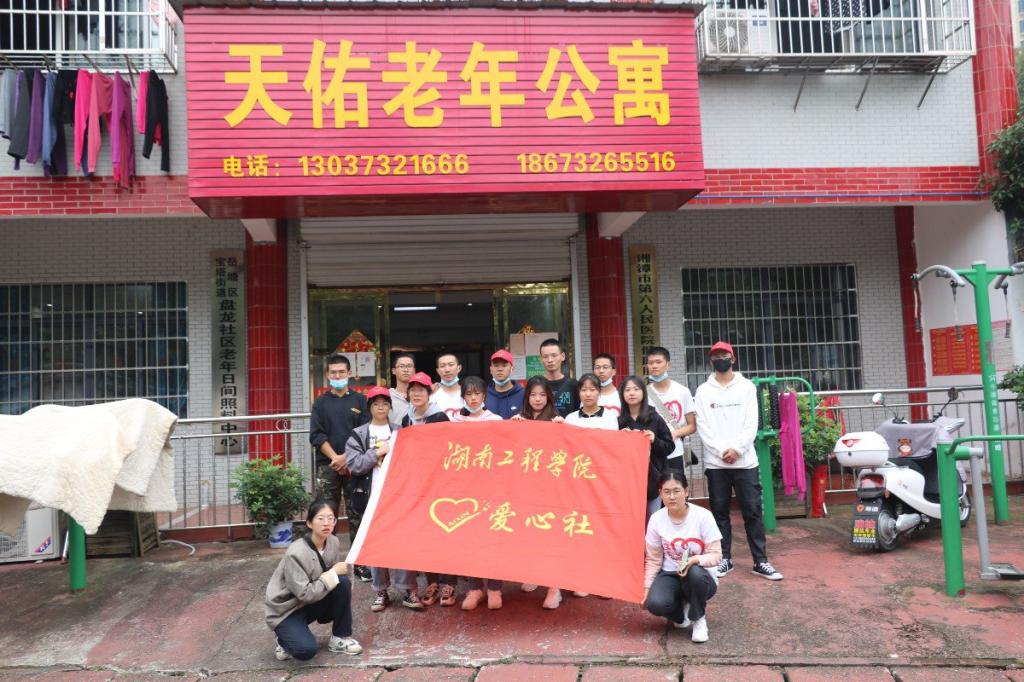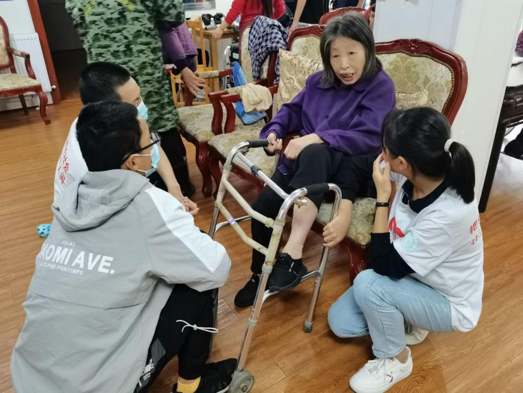 爱心社一行21人来到天佑老年公寓开展志愿服务活动。志愿者们来到老人公寓后帮忙打扫卫生,照顾老人的日常生活,和他们一起开展娱乐活动。整个下午,天佑老年公寓都沉浸在欢声笑语中。