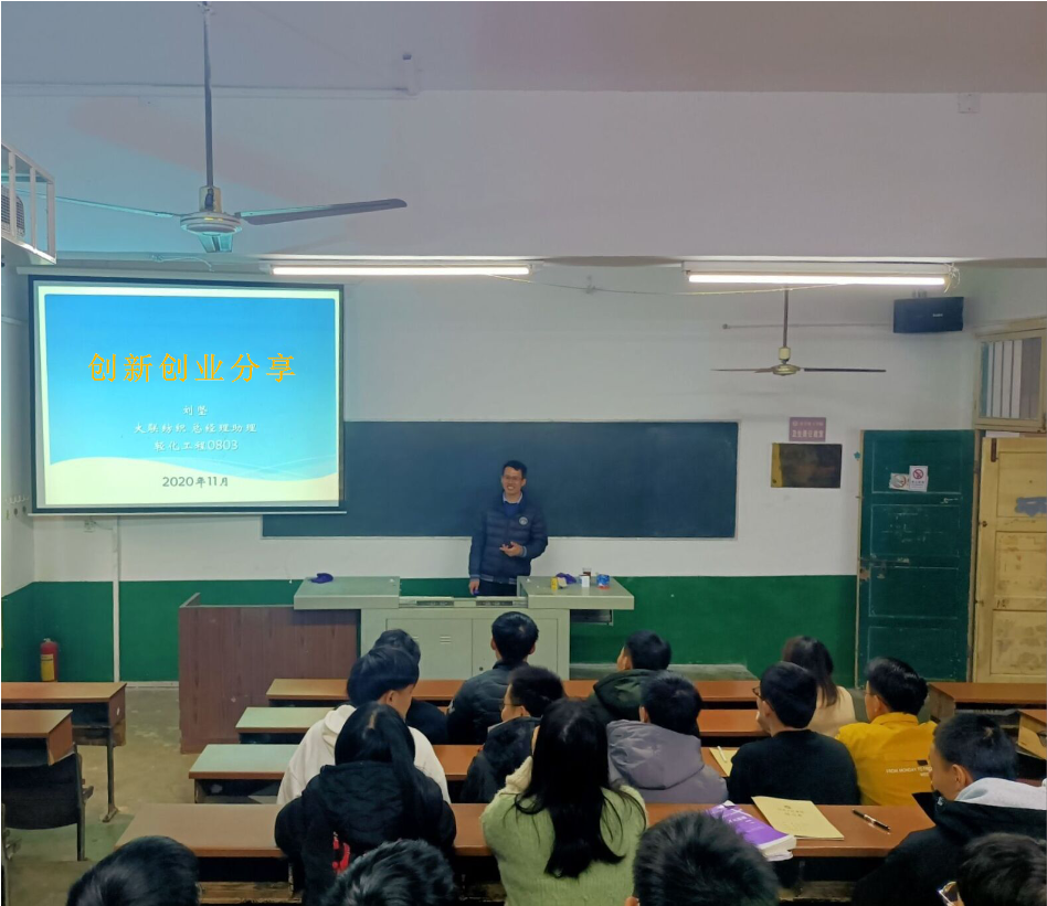 轻化工程08级校友、大联纺织总经理助理刘坚先生应邀为同学们进行企创新创业经验分享。