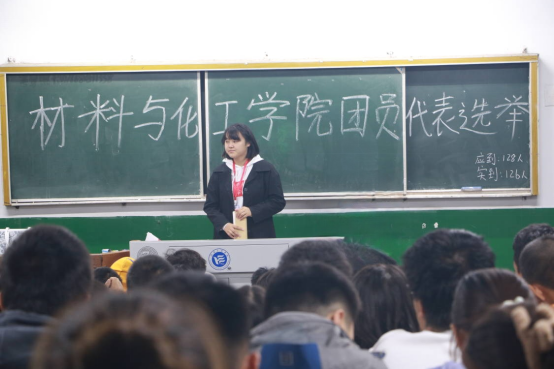 大会开始前,主持人介绍了本次会议背景,宣读了代表名额及构成、学生代表应具备的条件、代表产生的程序等内容。参会代表们认真审议选举办法,反复斟酌对比,秉承“公平、公正、公开”的原则,最终差额选举产生参加学校双代会的任文靖、唐昌盛等11名团员代表,石业诗、陶珊珊等20名学生代表。
