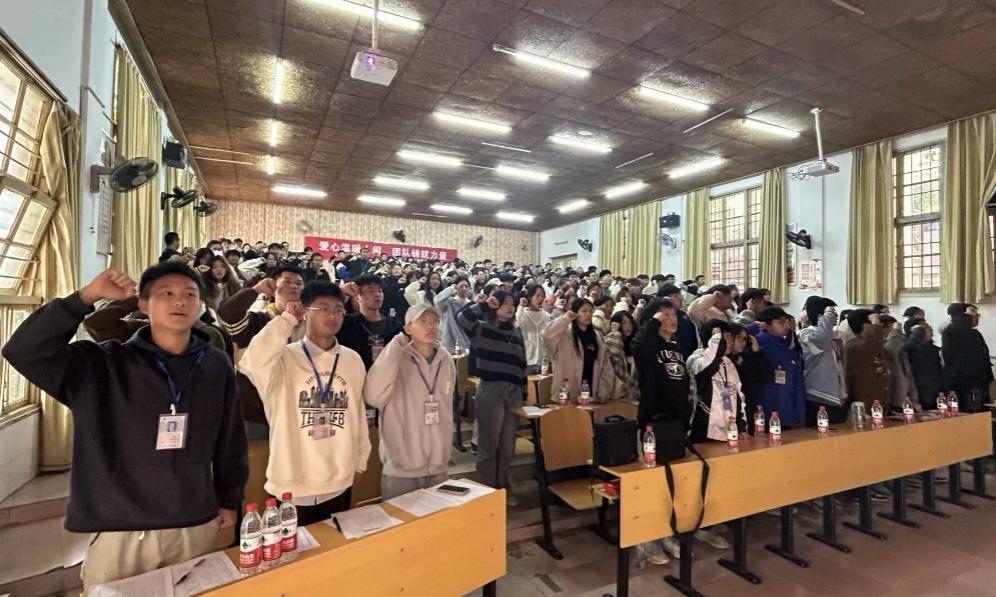 会前,爱心社各部门的干部干事便开始集合,为迎接新一届的社员们而做准备,他们身穿红马甲,分别前往北院北门、东门与天桥上迎接2023级新社员,带领他们去往会议地点。上午十点,大会准时召开,爱心社外联部部长赵金贺主持,大会分成六个环节,介绍爱心社社团、社长致辞、历届社员致辞、入社宣誓、各学院负责人选举与互动答题环节。