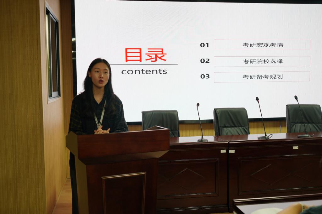 会议伊始,吉晓雅通过展示2024届考研报考人数与录取人数的数据,直观地分析了考研的具体情况,介绍了当前考研的竞争压力。“选择与努力哪个更重要?”她以广东对英语科目的高要求为例,强调了考研择校的重要性。列举了337分考生成功进入中山大学与343分考生却未能进入贵州大学的例子,说明了择校时分数并非唯一决定因素,明确指出了选择与努力的同等重要性。