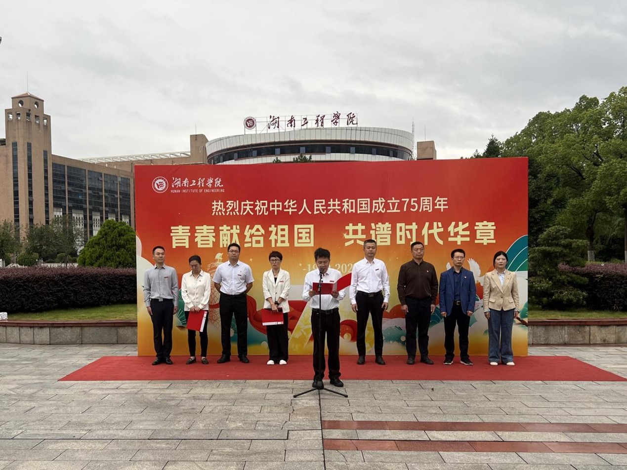 在主校区知行广场举行以“青春献给祖国,共谱时代华章”为主题的升旗仪式。校党委副书记、校长易兵,校党委委员、副校长张小刚,学生工作部、团委,保卫部、人民武装部,麻豆a片