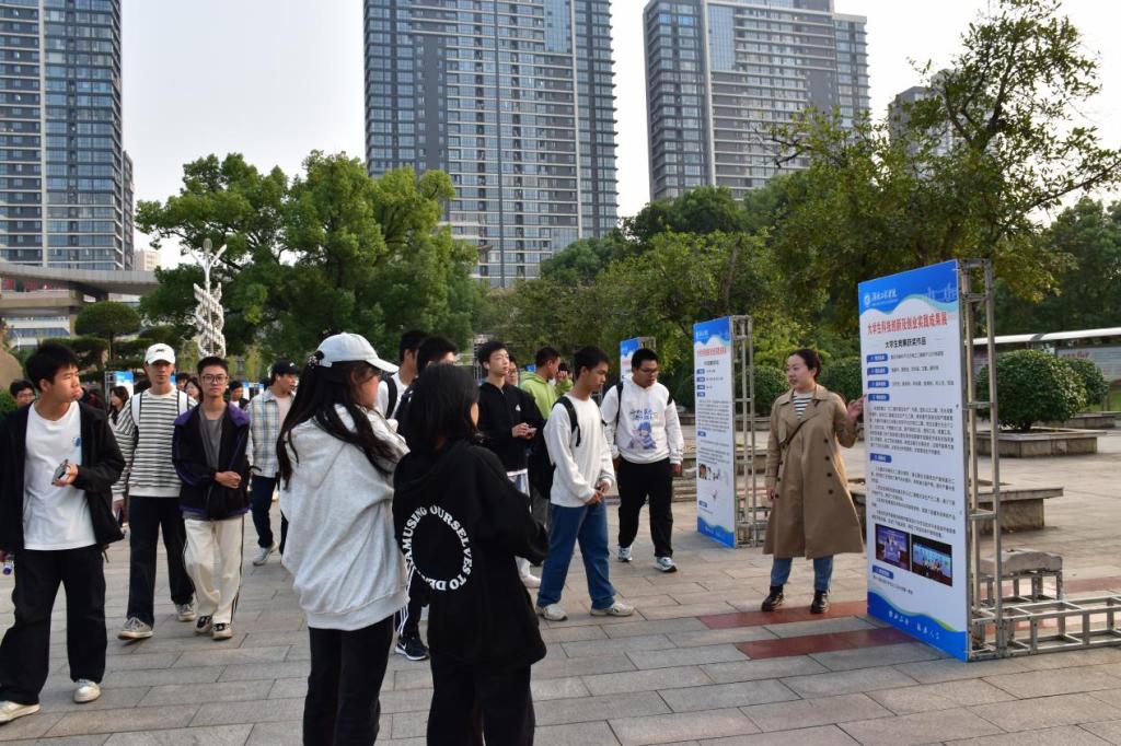 60余名2024级学生在双创专干柳芊老师的带领下参观了学校在知行广场举办的大学生科技创新及创业实践成果专题展。本次活动是由创新创业学院发起,旨在进一步激发学生创新创业发展潜能,充分发挥优秀项目成果的引领示范效应,营造浓厚的创新创业校园文化氛围,集中展示了大学生竞赛获奖优秀作品、国家级大学生创新创业训练项目和创新创业典型案例等。