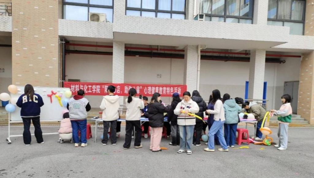 团总支心理联络部于11月26日下午在材化楼前坪开展了以“阳光心店,助你心扉”为主题的心理健康教育特色活动,吸引了众多学生参与。