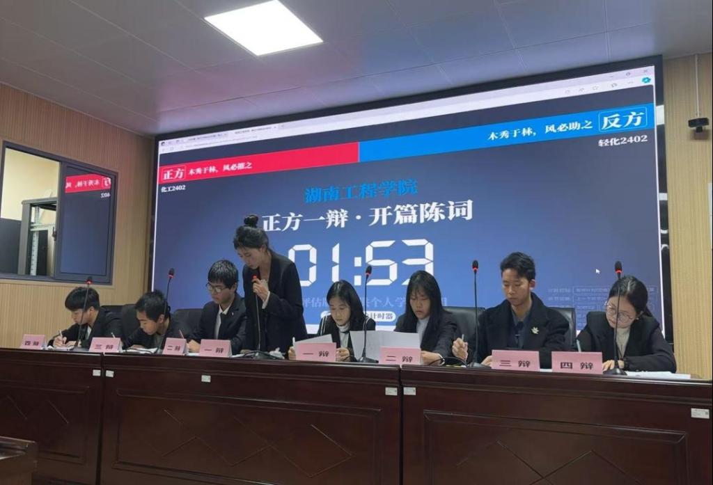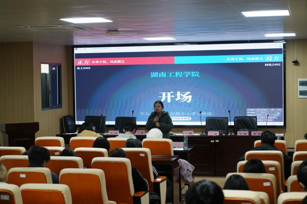 新生辩论赛决赛在材化楼A301精彩上演。进入决赛的两支队伍分别是化工2402班和轻化2402班。此次辩论赛的辩题,正方:“木秀于林,风必助之”,反方:“木秀于林,风必摧之”。活动邀请了学院团总支书记黄玲、兄弟学院学生会主席代表以及辩论队代表参与。