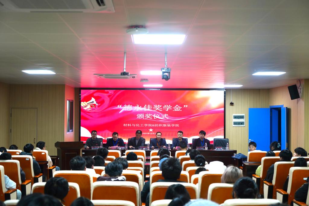 德永佳奖学金颁奖典礼在材化楼A301举行。校党委委员、副校长魏克湘,东莞德永佳纺织制衣有限公司人力资源部总监傅桂君、薪酬绩效科主任郑黎,校友联络中心主任张宏、纺织服装学院党委书记李爱国、党委副书记何斌、麻豆a片