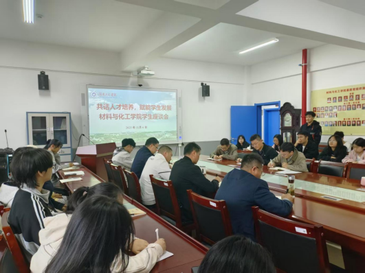 在材化楼 A304 会议室成功召开 “共话人才培养,赋能学生发展” 主题学生座谈会。学院党委书记徐粤宇、院长黄先威、副书记陶连洲、副院长兰东辉、学办主任单艳艳、教务办主任杨辉琼、教研室主任以及 40余名学生代表参会, 会议由兰东辉主持。