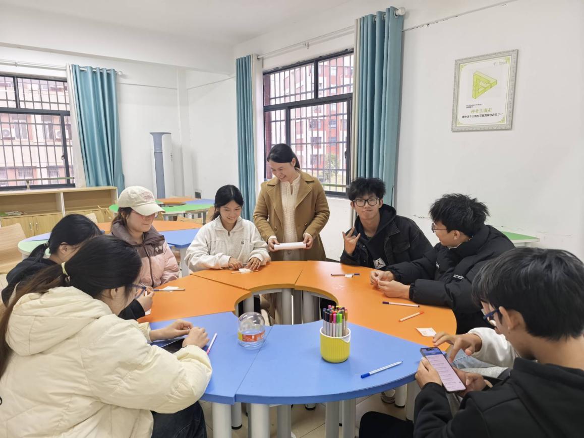 活动开始前,学院心理专干黄玉娟向同学们介绍了团体辅导的目标与内容,鼓励大家以积极、真诚的态度参与,相互支持、共同成长。本次活动设置了“倾听的密语”“非言语的暗号”“需求的星图”三个主要环节。黄玉娟全程参与指导,结合轻松有趣的互动游戏,引导同学们在愉快的氛围中释放压力,掌握倾听与表达的基本方法。现场气氛融洽,同学们积极参与并交流个人感受,逐步提升了有效沟通的能力。