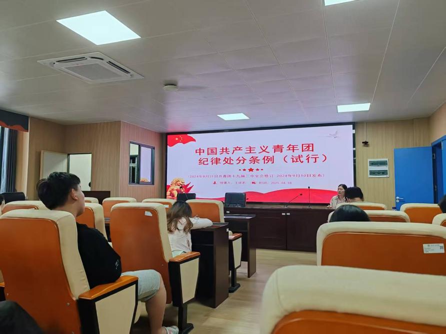分团委于4月18日组织开展以学习《中国共产主义青年团纪律处分条例》为主题的团课活动,本次团课由分团委书记王祥若主讲,全院团支部书记、新发展团员和入团积极分子参加活动。
