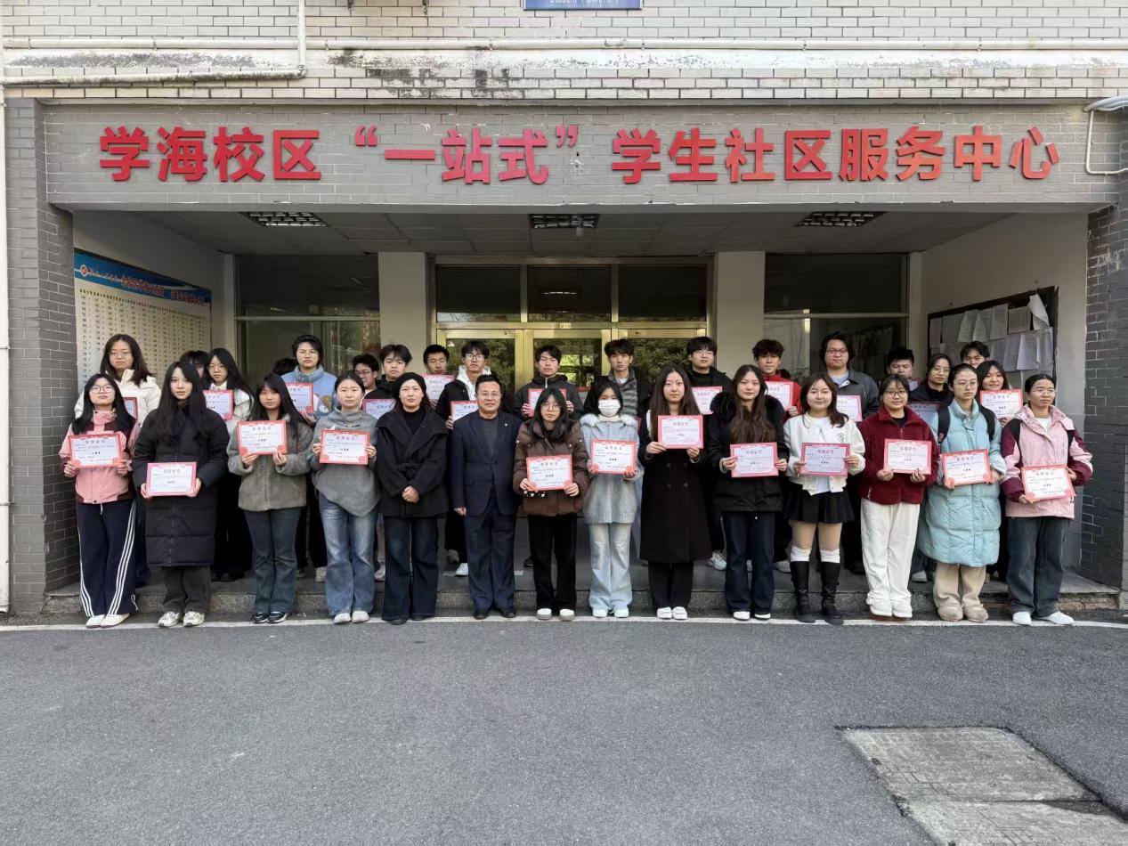 在学海12栋“一站式”学生社区举行学风建设月系列活动颁奖仪式。学院党委副书记陶连洲、辅导员王祥若及全体获奖学生参加活动。