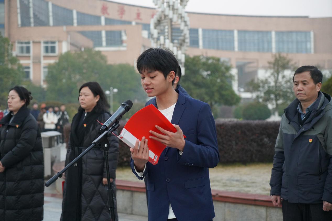 轻化工程专业学生郭兴达作为学生代表发言。他结合材料与化工学科特点,阐述了新材料技术在支撑国家重大战略中的重要作用。他表示,材化学子应努力夯实专业基础,投身创新实践,以实际行动践行“强国有我”的青春誓言。