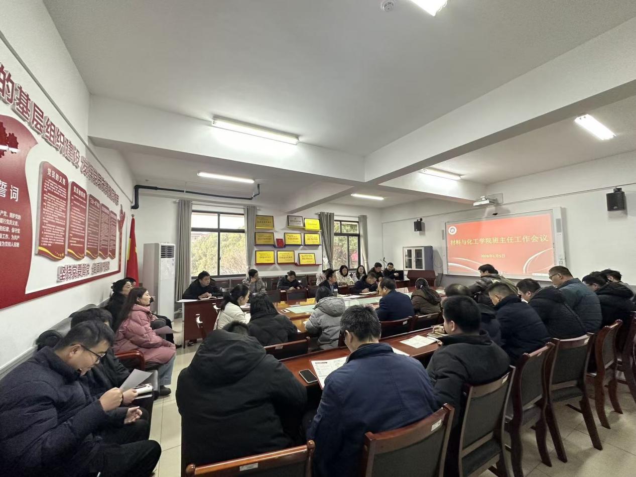 在材化楼A304召开2026年第一次班主任工作会议。会议聚焦学生管理中的突出问题,部署近期重点工作,学院党委书记徐粤宇、党委副书记陶连洲、全体班主任及辅导员参加。会议由陶连洲主持。