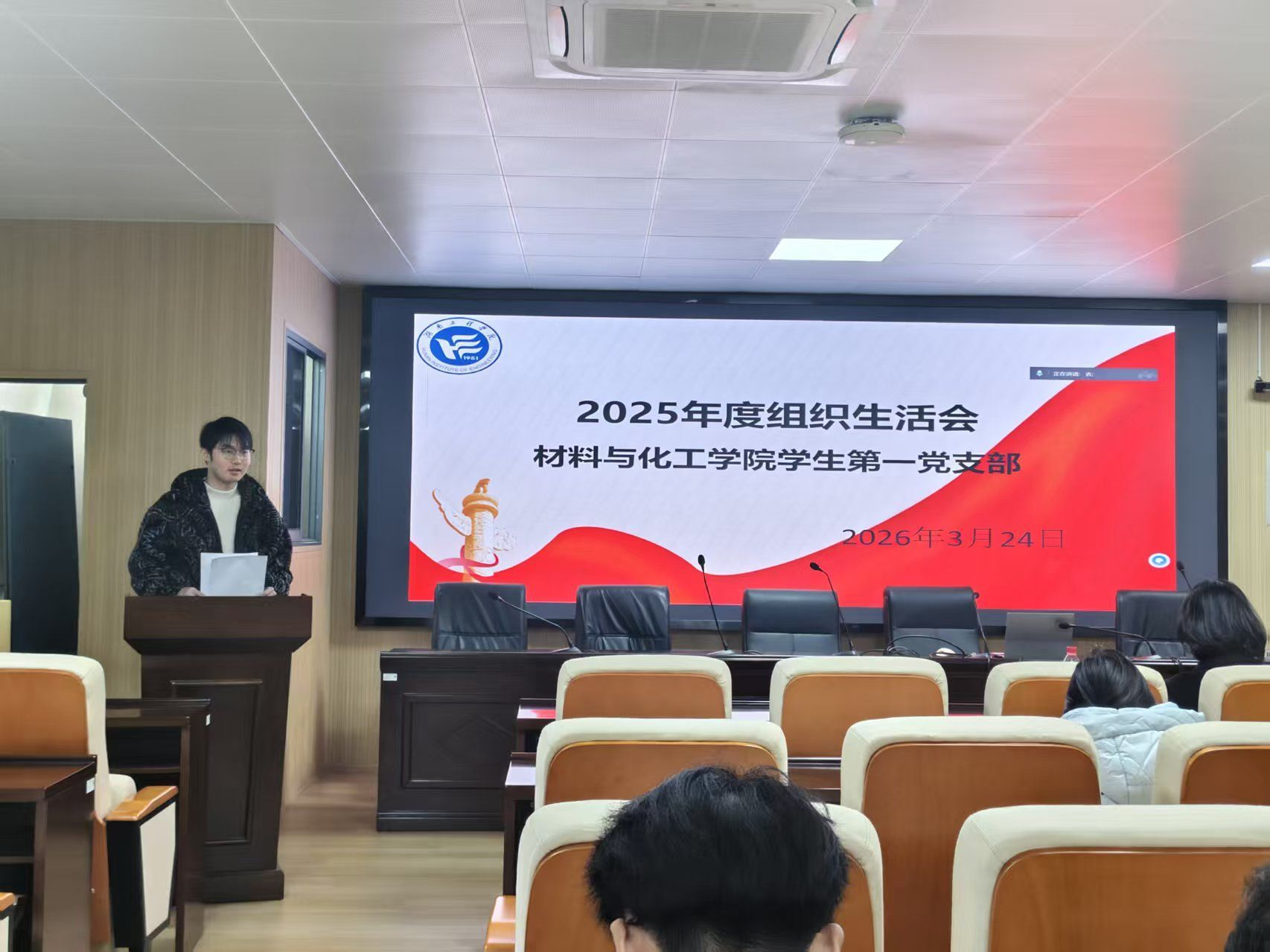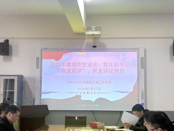 20263月24日至27日,根据学校党委统一部署,麻豆a片 各党支部材化楼召开2025年度组织生活会,同步开展民主评议党员和支部书记"双述双评"工作。全体师生党员参加会议。学院领导班子成员以普通党员身份参加所在支部会议,并深入联系支部进行指导点评。