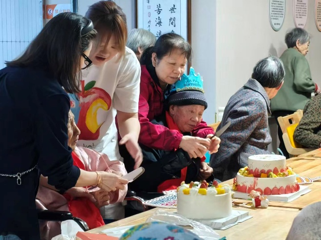 爱心社志愿者团队前往福星仁科颐养公馆,协助举办了一场温馨的集体生日会,为老人们送去春日暖意与真挚祝福。