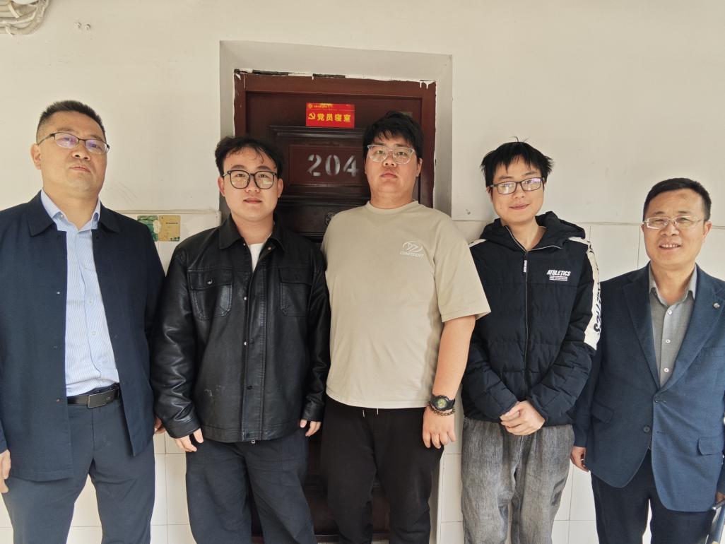 活动中,徐粤宇一行深入学生宿舍,为党员、学生干部寝室逐一挂牌,并走访了解学生思想动态与生活需求,切实把思政教育延伸至宿舍“最后一公里”。鲜红门牌既是身份标识,更是责任与承诺的具象彰显。