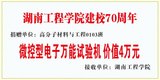 风吹耳畔师尊语,月挂梢头学子心。在收到母校建校70周年消息后,全班同学积极响应,得知高分子实验室急需一台微控型电子万能试验机进行教学与实验,他们线上集合进行讨论和商榷,最后一致确定认购一台新设备,为母校建校70周年献上一份有形有温度的礼物。他们仅用20天就完成了从筹款、购买到设备送达、安装调试等环节,创造了湖工购置实验设备新速度,体现了班级强大的执行力与对母校浓浓的情怀。