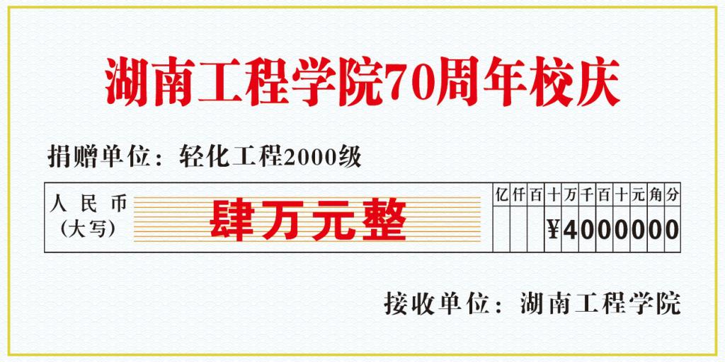 近日,学校收到轻化工程2000级向母校建校70周年捐款4万元。