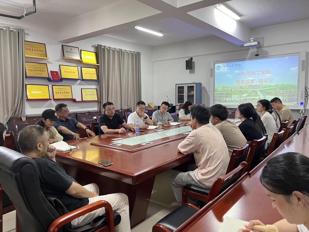 邀请优秀校友郭东海(现为湖南海纳明人人力资源服务有限公司法人代表)来学院作分享交流,学院党委书记徐粤宇,院长张儒,副书记罗荃,全体辅导员,应用化学专业相关老师和学生代表参加座谈。