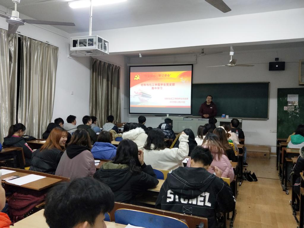 学生党支部在四教301组织党员集中学习党的十九届四中全会精神。