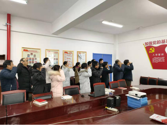 张何作为领誓人,带领全体党员重温入党誓词:“我志愿加入中国共产党,拥护党的纲领……,随时准备为党和人民牺牲一切,永不叛党。”重温入党初心,回忆入党过程,接受灵魂洗礼,凝聚向心力。