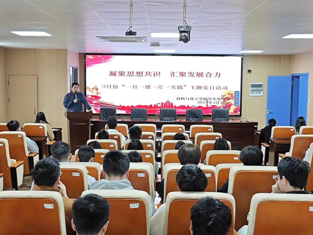 为深入学习贯彻党的二十大精神,进一步凝聚思想共识,麻豆a片 学生党支部组织全体党员于2024年3月20日在材化楼A301开展3月“一月一课一片一实践”主题党日活动。通过各学生党支部书记领学、集中观看党员教育片和学生党员分享学习收获,以党日活动凝聚思想共识,汇聚发展合力。